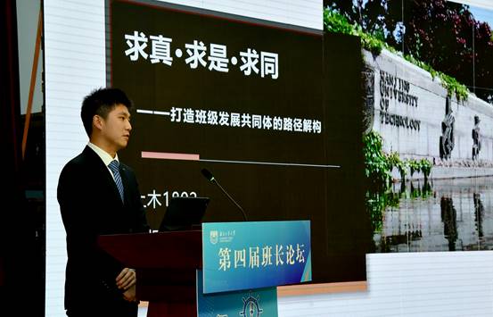 校党委副书记吴胜红结合论坛主题及《本科生班级建设指导意见》,对班长工作提出三点希望:一是提炼班级文化建设向心力,做思想引领的主心骨;二是增强班级组织建设凝聚力,做团队发展的顶梁柱;三是加大班级学风建设行动力,做勤学善思的发动机。