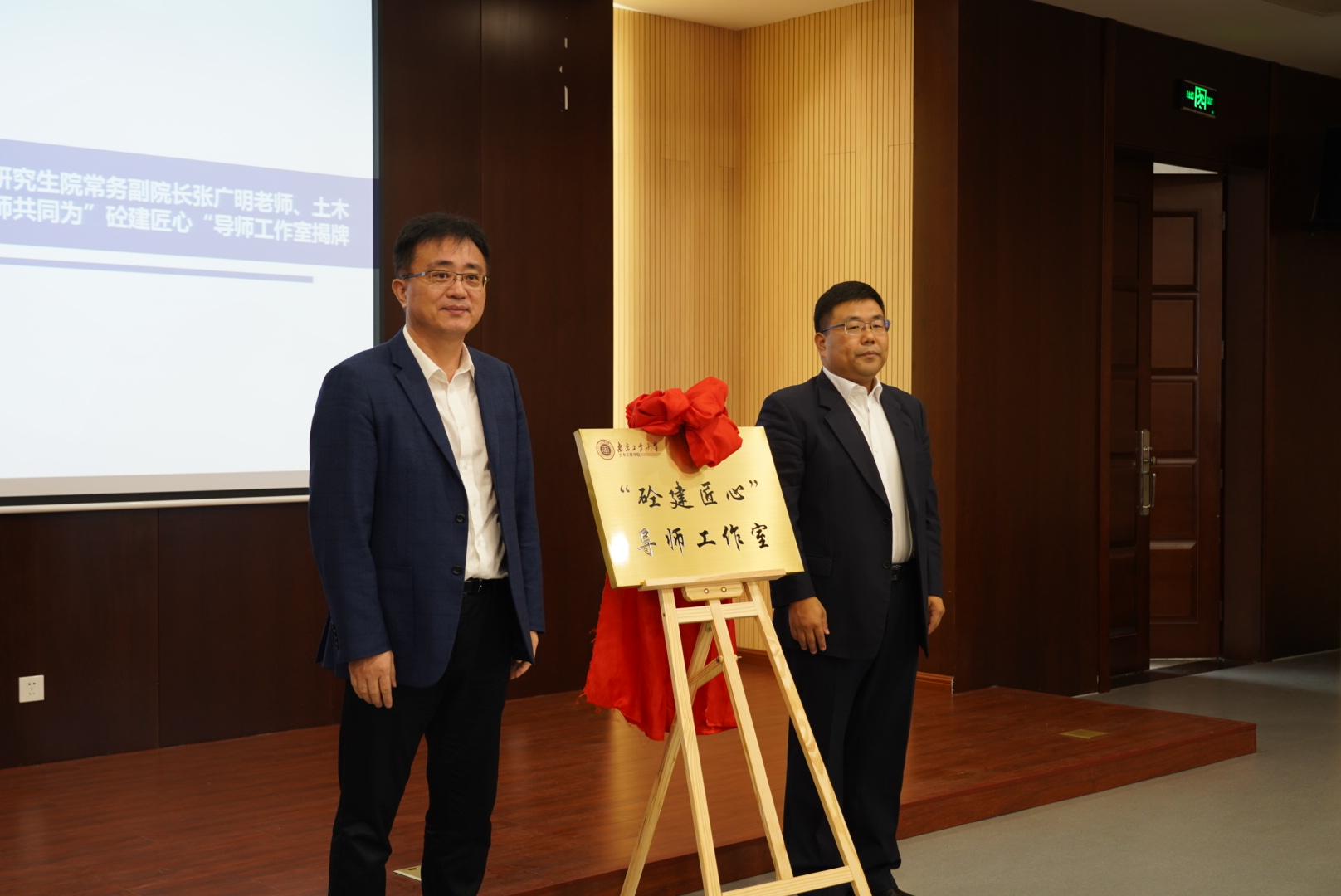 张涛对导师工作室的成立表示祝贺,并对导师工作室今后的培养方向和发展规划提出了要求;随后,张广明和张涛共同为“砼建匠心”导师工作室揭牌。