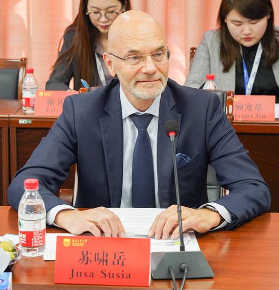 芬兰驻华大使馆Jusa Susia商务参赞对必赢官网的热情接待和精心安排表示感谢,充分肯定了必赢官网现代木结构研究团队在科学研究、标准规范和工程应用等领域的特色和优势,介绍了芬兰森林可持续发展的管理及地理优势、芬兰木材资源及木材特点。商务团各代表分别介绍了企业产品、应用领域和特点优势,表达了积极合作共同推进中国现代木结构发展的愿景。