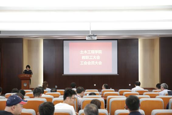 在校工会的指导和帮助下,在全院教职工的共同努力下,6月9日,bwin必赢唯一官方网站教职工大会、工会会员大会在土木学院学科楼二楼报告厅胜利召开,大会由学院副院长王俊主持,大会在庄严的国歌声中拉开了序幕。
